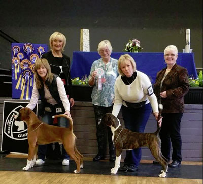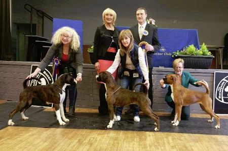 Best Bitch Huxley's Seacrest Beryl The Peril at Blixen, Reserve Best Bitch Pynegar's Ice CH Hagalins Kickin' Up Dust at Berwynfa (Imp) and Best Puppy Bitch Beardsell & Van-Beck's Newlaithe Gingernut