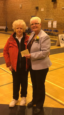 Margaret Wildman presenting Janice Mair £50.00 for the exhibitors who entered and exhibited the most dogs